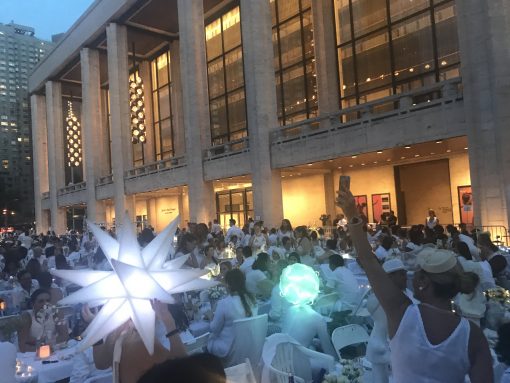 This past Tuesday, I had the pleasure of attending Dîner en Blanc at Lincoln Center. Selavi Global produced the event impressively. Everyone was dressed beautifully in white and had the most creative table displays. The evening included special surprises such as performances by Opera singers Samantha Jeffreys and Andrea Chinedu Nwoke. Rockjazz musician ELEW and Brooklyn United Marching Band also impressed guests with their vibrant sound. Cover Girl provided a touch up station with free makeup giveaways as well as a photo booth to capture the moment. Chef Todd English prepared elegant picnic meals with dishes such as Southern Fried Chicken, Baby Back Ribs, and Vegan Corn Salad.