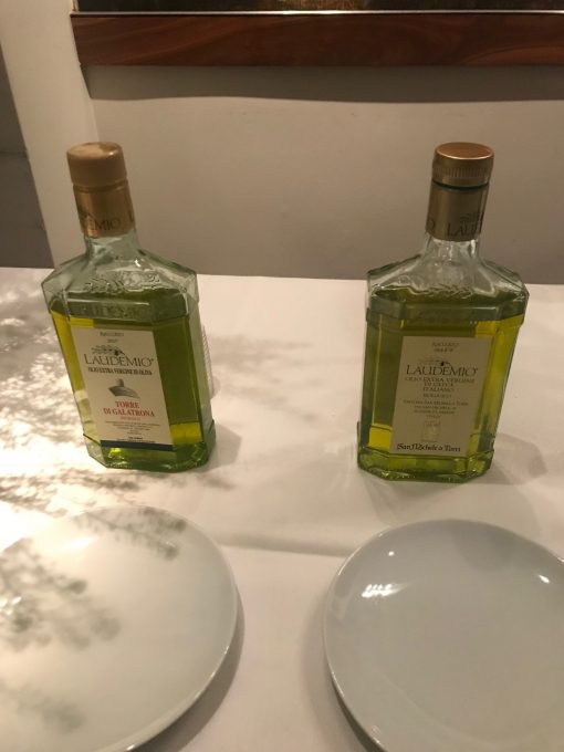 Laudemio is the quintessence of fine, high quality extra virgin olive oil. I had the pleasure of attending a tasting luncheon for the brand at Leopard Des Artistes. The cold pressed oil is methodically produced in Tuscany by 21 estates that pick the olives at the right stage of ripeness, embracing quality and unique taste. Diana Frescobaldi, president of the Laudemio consortium attended the luncheon and gave guests background on Laudemio’s history. She also provided some tasting notes on the six different oils (Frescobaldi, Antinori, Fattoria San Michele a Torri, Petrolo, Gonnelli, Fattoria Le Sorgenti) that were present for tasting.