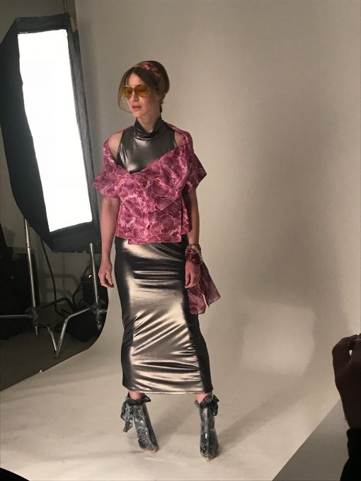 Kaer Brooklyn showcased its F/W 2018 collection at Galleria Ca’d’ Oro in Chelsea with a live photo shoot. Marianne Møllmann, the brand’s designer, uses urban nature photographs from Denmark and New York for inspiration in her designs. Her collection has a retro vibe with a focus on accessorizing. I love the vibrant prints, the head scarves, and the alluring sunglasses. The looks were paired with lace-up heels and clear booties. The mod look is definitely showstopping with its invigorating appeal.