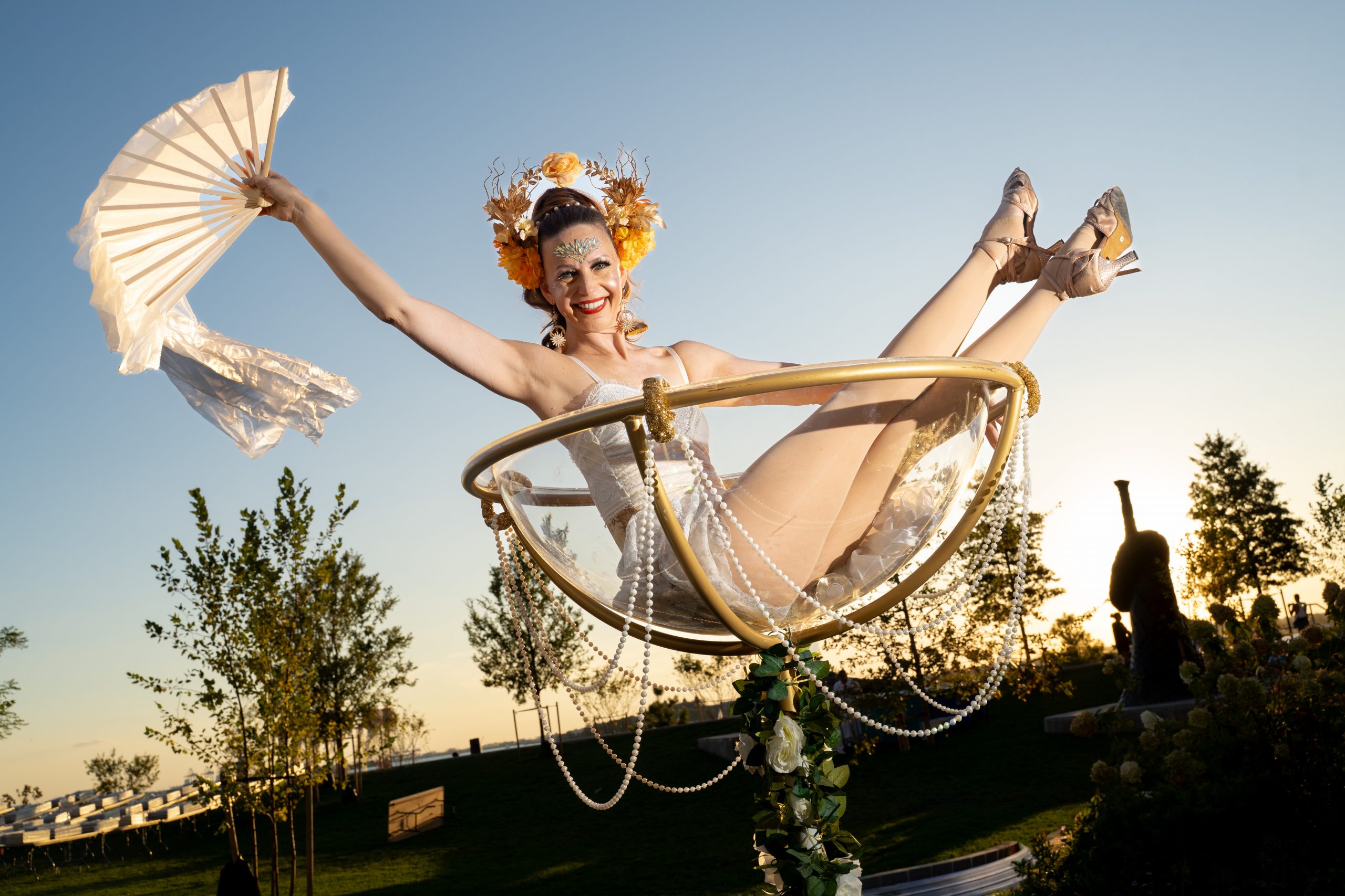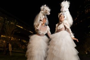 We were all greeted with acrobats in jumbo champagne glasses and music by Grammy-nominated Columbian American singer, Alemor. Other entertainment included music by Triad Bass, an innovative New Orleans-style band, and beats by DJ Lina, an electrifying talent.