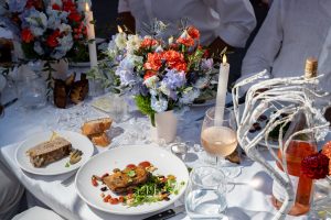 In addition, world renowned Chef Daniel Boulud prepared French-inspired picnic baskets for the event. There were both meat and vegetarian options. Boulud shared that “Dîner en Blanc always brings a burst of French summer feasts to cities around the world in a celebration of friendship, fashion, and food. As a French New Yorker, I’m honored to prepare a festive picnic basket for this magical evening. It will certainly be the largest and chicest gathering of fête a la Francaise!”What a joy to have such a talented and gracious chef involved with Diner en Blanc’s culinary creations!