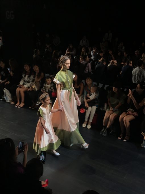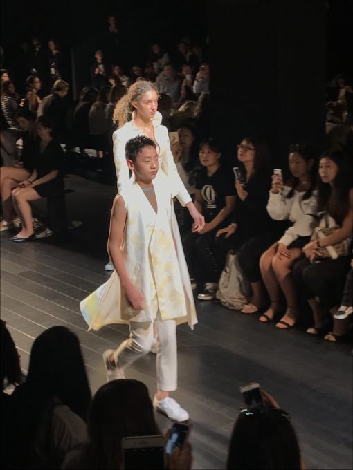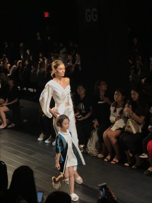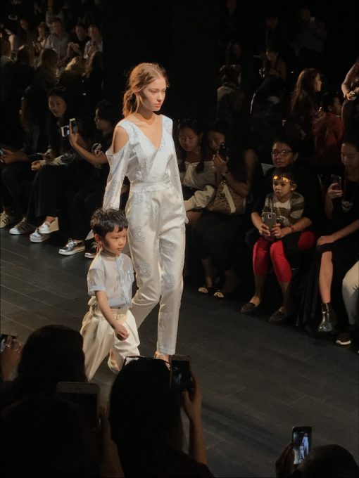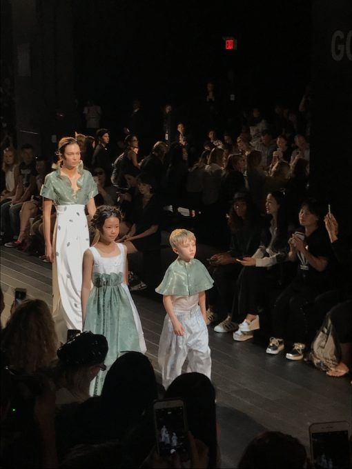 Vicky Zhang displayed a unique SS18 Collection at Skylight Clarkson. The designer featured mother and child looks on the runway. Both boys and girls walked in synchrony with mother-type models. Many components in the collection stand out such as draped sleeves, capes, innovative slits, embroidered lace, and vibrant colors. The looks are elegant, whimsical, and classic. I couldn’t get over how cute the children looked in the mommy and me outfits! The show ended with the children dancing to an upbeat song. This ending along with the beautiful looks kept everyone in great spirits at NYFW!