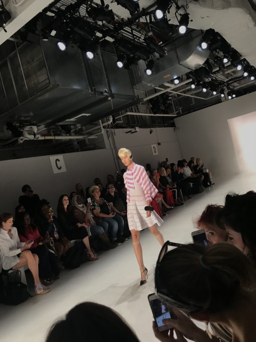Chocheng presented a beautiful SS18 collection at Skylight Clarkson. It’s inspired by the golden age of Haute Couture from 1947-1957. I’m fascinated by its range of fabrics that include Cotton bouclé, tweed, embroidered silk lace and handmade embellishments. I also loved the color palette that included red, lilac, pink, and cream. The collection offers a mix of knits and separates and is alluring, sophisticated, and retro chic. It’s a modern twist on a classically elegant silhouette.